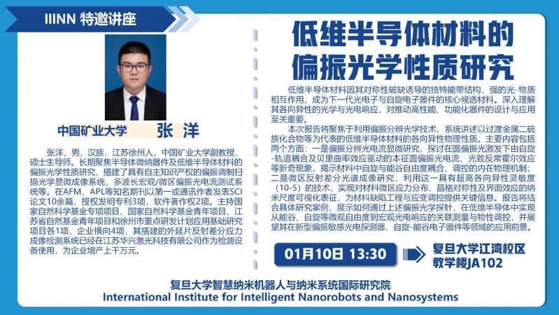 本次报告将聚焦于利用偏振分辨光学技术,系统讲述以过渡金属二硫族化合物等为代表的低维半导体材料的各向异性物理性质。主要内容包括两个方面:一是偏振分辨光电流显微研究,探讨在圆偏振光激发下由自旋-轨道耦合及贝里曲率效应驱动的本征圆偏振光电流、光致反常霍尔效应等新奇现象,揭示材料中自旋与能谷自由度耦合、调控的内在物理机制;二是微区反射差分光谱成像研究,利用这一具有超高各向异性灵敏度(10-5)的技术,实现对材料微区应力分布、晶格对称性及界面效应的纳米尺度可视化表征,为材料缺陷工程与应变调控提供关键信息。报告将结合具体研究案例,展示如何通过上述偏振光学探针,在低维半导体中实现从能谷、自旋等微观自由度到宏观光电响应的关联测量与物性调控,并展望其在新型偏振敏感光电探测器、自旋-能谷电子器件等领域的应用前景。